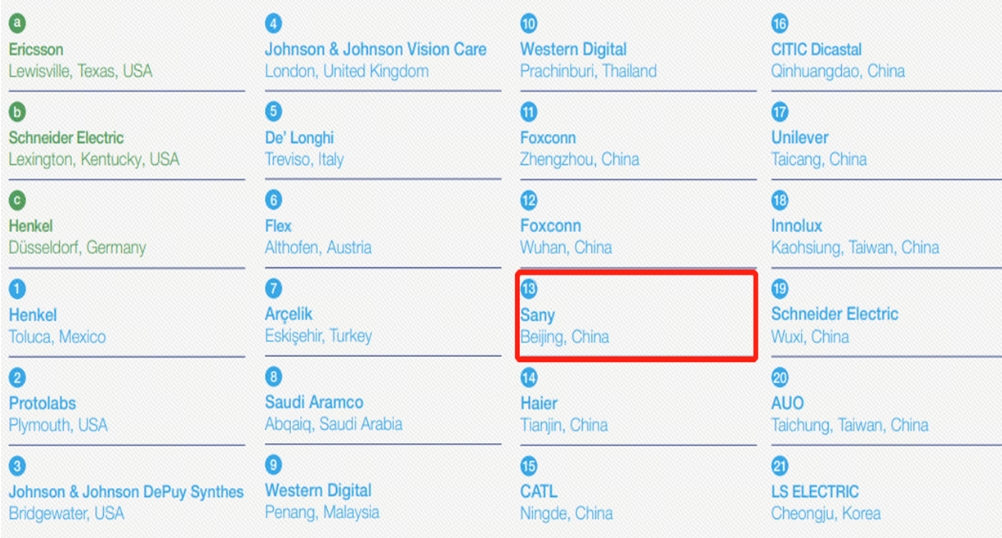 2019年5月選取三一北京樁機工廠建立燈塔工廠,2021年9月燈塔工廠申請成功。