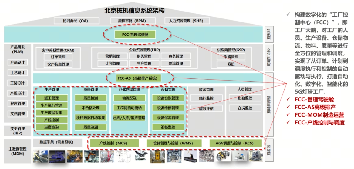 構建數字化的“工廠控制中心(FCC)”,即工廠大腦,對工廠的人員、生產設備、倉儲物流、物料、質量等進行全方位的管理和調度,實現了從訂單、計劃到調度執行和控制的自動驅動與執行,打造自動化、數字化、智能化的5G燈塔工廠。