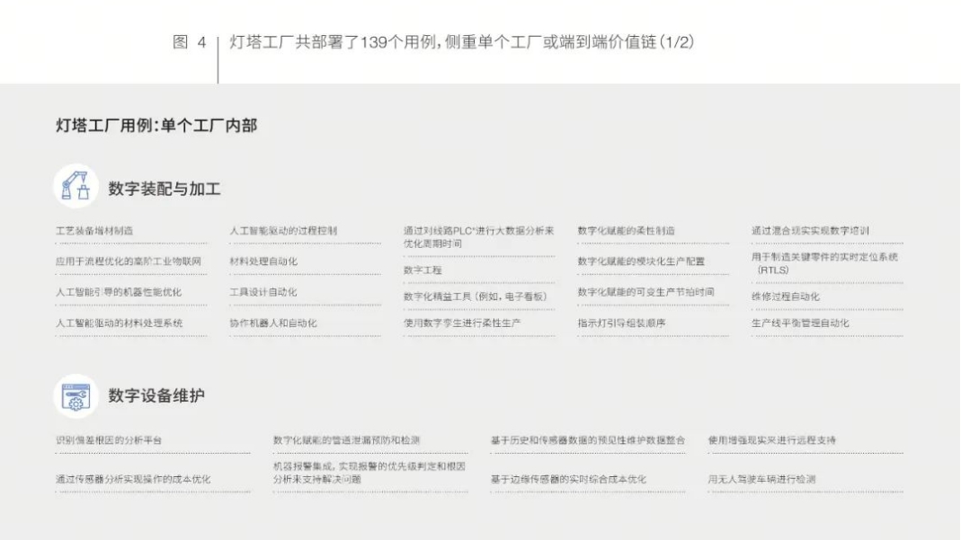 (1)卓越燈塔工廠個體:比較關注工廠或者車間本身先進技術的應用,以及運營模式的管理。簡單來講就是更關注工廠端先進技術的應用,主要涉及以下用例: