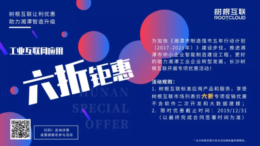 為更好地配合湘潭市委、市政府及市工信局政策工作,推進湘潭市中小企業智能制造建設工程,樹根科技在本次培訓現場還正式啟動了專項優惠活動,樹根科技標準應用產品和服務均享受樹根科技市場列表價的六折促銷優惠(不包含軟件二次開發和大數據建模)。