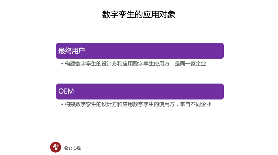 對應(yīng)于OEM的數(shù)字孿生,構(gòu)建數(shù)字孿生的設(shè)計方和應(yīng)用數(shù)字孿生的使用方,來自不同企業(yè)。