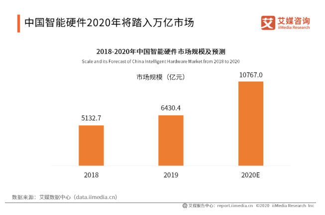 數(shù)據(jù)顯示,中國(guó)智能硬件市場(chǎng)發(fā)展較快,2020年市場(chǎng)規(guī)模預(yù)計(jì)達(dá)到10767.0億元。艾媒咨詢分析師認(rèn)為,智能制造行業(yè)發(fā)展逐漸走向成熟,依托各類基礎(chǔ)技術(shù)支撐及應(yīng)用場(chǎng)景拓展,智能硬件成為消費(fèi)重要品類。