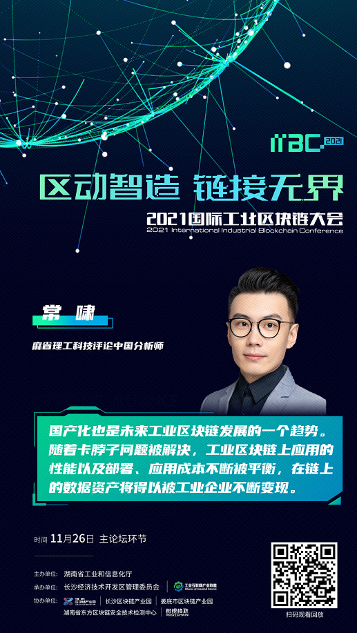 2021年是十四五開(kāi)局之年,也是數(shù)字經(jīng)濟(jì)起航之年。1126日,湖南省工業(yè)和信息化廳牽頭主辦了一場(chǎng)以區(qū)動(dòng)智造,鏈接無(wú)界為主題的國(guó)際工業(yè)區(qū)塊鏈大會(huì)。本次國(guó)際工業(yè)區(qū)塊鏈大會(huì)分開(kāi)幕式、主論壇和新基建技術(shù)融合應(yīng)用”+“區(qū)塊鏈融合創(chuàng)新兩場(chǎng)分論壇。