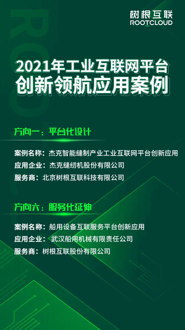樹根科技憑借行業領先的綜合實力,從參評眾多案例中脫穎而出,助力杰克智能縫紉產業工業互聯網平臺創新應用及船用設備互聯服務平臺創新應用兩項成果上榜“工業互聯網平臺創新領航應用案例”平臺化設計方向與服務化延伸方向,成為工業賦能典型案例。