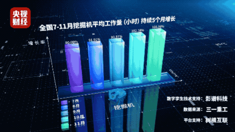 掘機是基礎設施建設的標配,是反映基礎設施建設、觀察固定資產投資等經濟變化的風向標。央視財經與三一重工、樹根科技聯合打造的央視財經挖掘機指數今天發布了11月份相關數據。