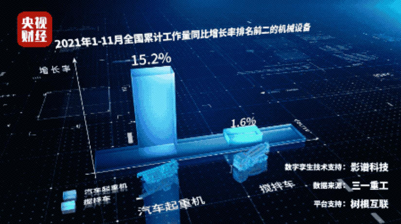 111月,全國累計工作量同比增長率排名前二的機械設備,依次為汽車起重機、攪拌車,增幅分別為15.2%1.6%