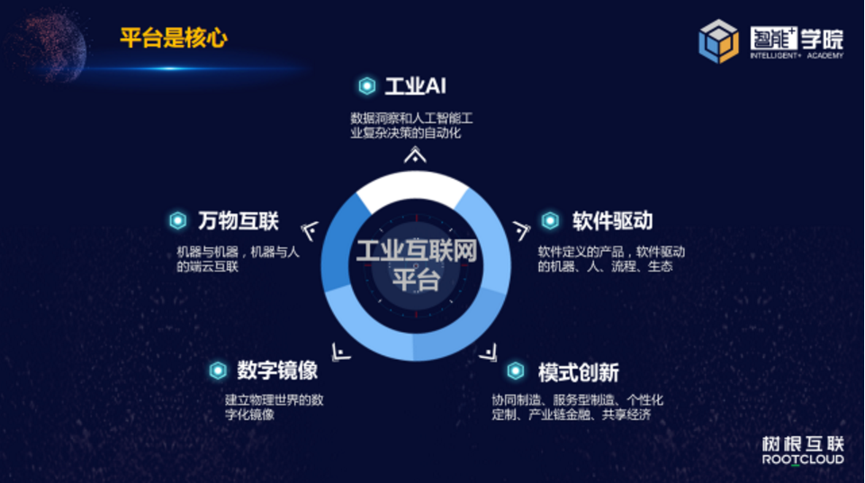 網(wǎng)絡(luò)化更多是說新的連接,就是把機(jī)器、設(shè)備、人、物全部要連接網(wǎng)絡(luò)上,同時會有所有這些對象的數(shù)字化,就是我們的數(shù)字雙胞胎。最后一點(diǎn),當(dāng)所有這些物理對象和人數(shù)字化以后它就可以把新一代的技術(shù)能夠完全使用起來,也可以把互聯(lián)網(wǎng)支撐的商業(yè)模式能夠使用起來實(shí)現(xiàn)一個自動化運(yùn)營。而整個轉(zhuǎn)變的核心是工業(yè)互聯(lián)網(wǎng)平臺