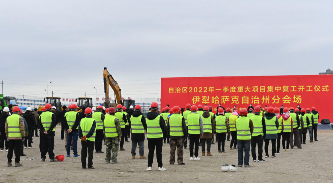 圖注:2022317日拍攝的新疆2022年第一季度重大項目集中復工開工儀式伊犁哈薩克自治州分會場。新華社記者 郝建偉