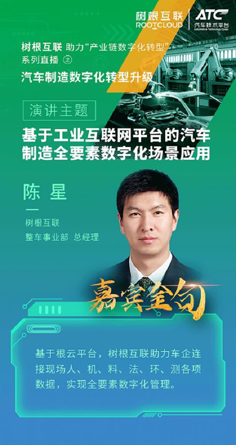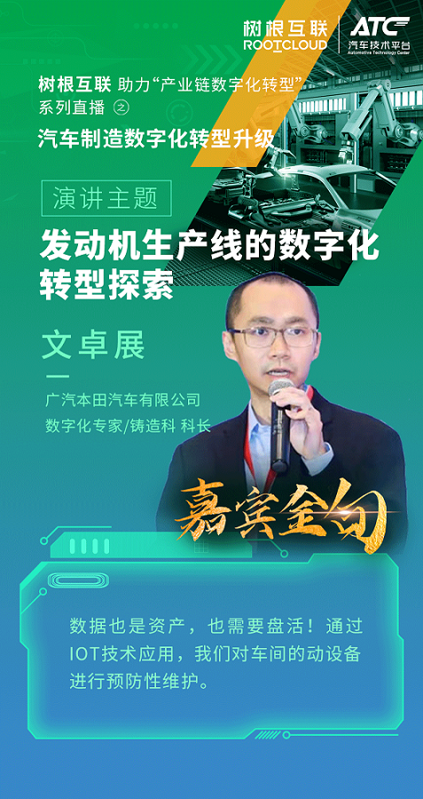 2022427日,在廣州市鏈長制辦公室(廣州市工業和信息化局)的指導下,樹根科技作為廣州市軟件和信創產業鏈鏈主企業,聯合ATC 汽車技術平臺舉辦樹根科技助力產業鏈數字化轉型系列直播之汽車制造數字化轉型升級活動,特邀廣汽本田、一汽-大眾數字化專家們,帶來汽車制造數字化專業分享。