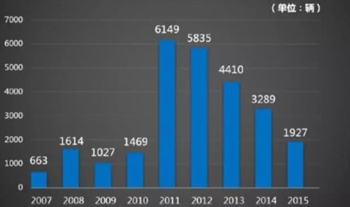 圖4:2007—2015年輝騰國內(nèi)上牌量一覽