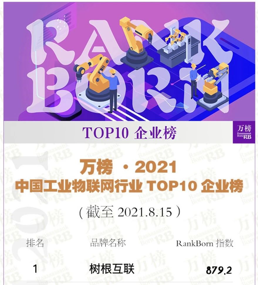 第一!樹根科技領銜“2021中國工業物聯網行業TOP10”