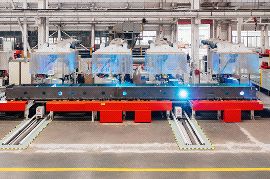 智慧物流的實現,則交給了聰明的貨物搬運“飛毛腿”——AGV小車。在精準授時、低時延的5G無線工業專網的保證下,行業首創2臺AGV“雙車夢幻聯動”,實現27米超長超重物料的同步搬運和自動上下料。