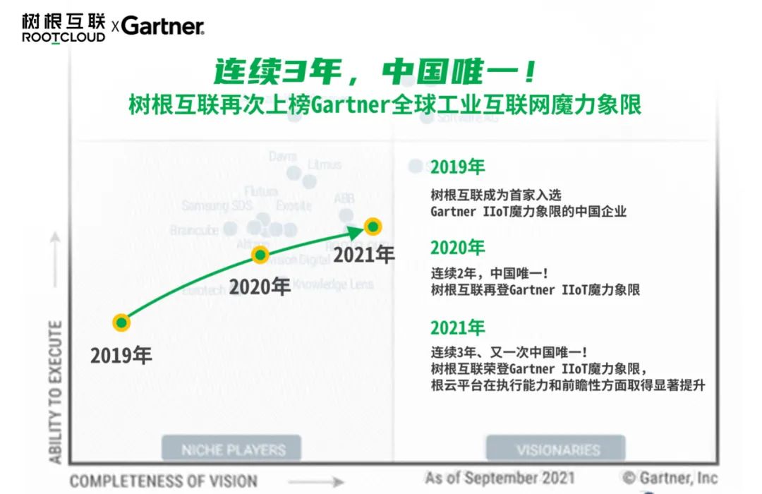 這不僅僅是對樹根科技平臺能力與落地方案的權(quán)威認證,更代表著中國工業(yè)互聯(lián)網(wǎng)在世界舞臺上的“新坐標”。 眾所周知,在工業(yè)互聯(lián)網(wǎng)領(lǐng)域,競爭異常激烈,特別是在國外工業(yè)互聯(lián)網(wǎng)平臺起步較早、基礎普遍比國內(nèi)好的前提下,樹根科技憑借什么成為連續(xù)3年、中國唯一入選魔力象限的企業(yè)?