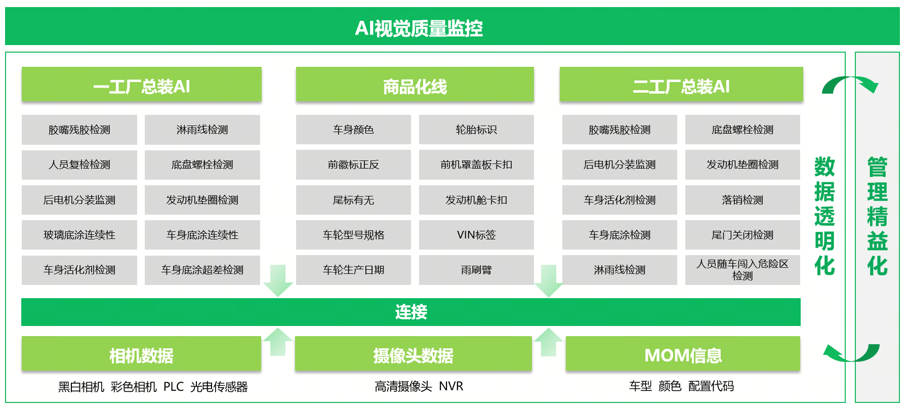 通過工業相機\攝像頭+AI算法,實現產品質量自動檢測、工藝標準化提升,提高質量水平和人效。